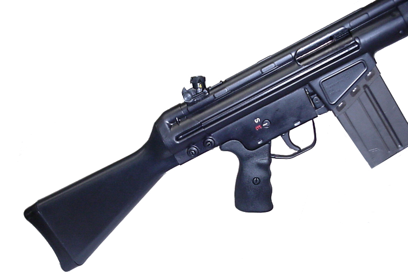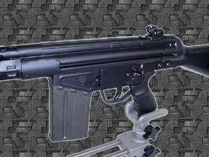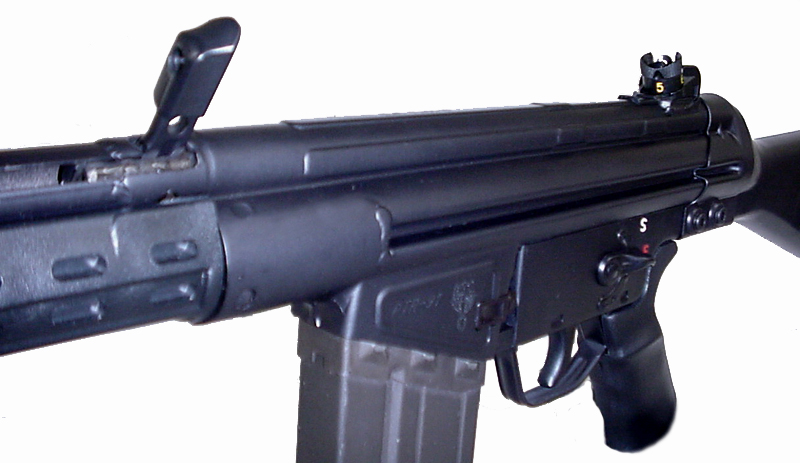 semi-automatic, recoil-operated rifle with delay roller is equipped with